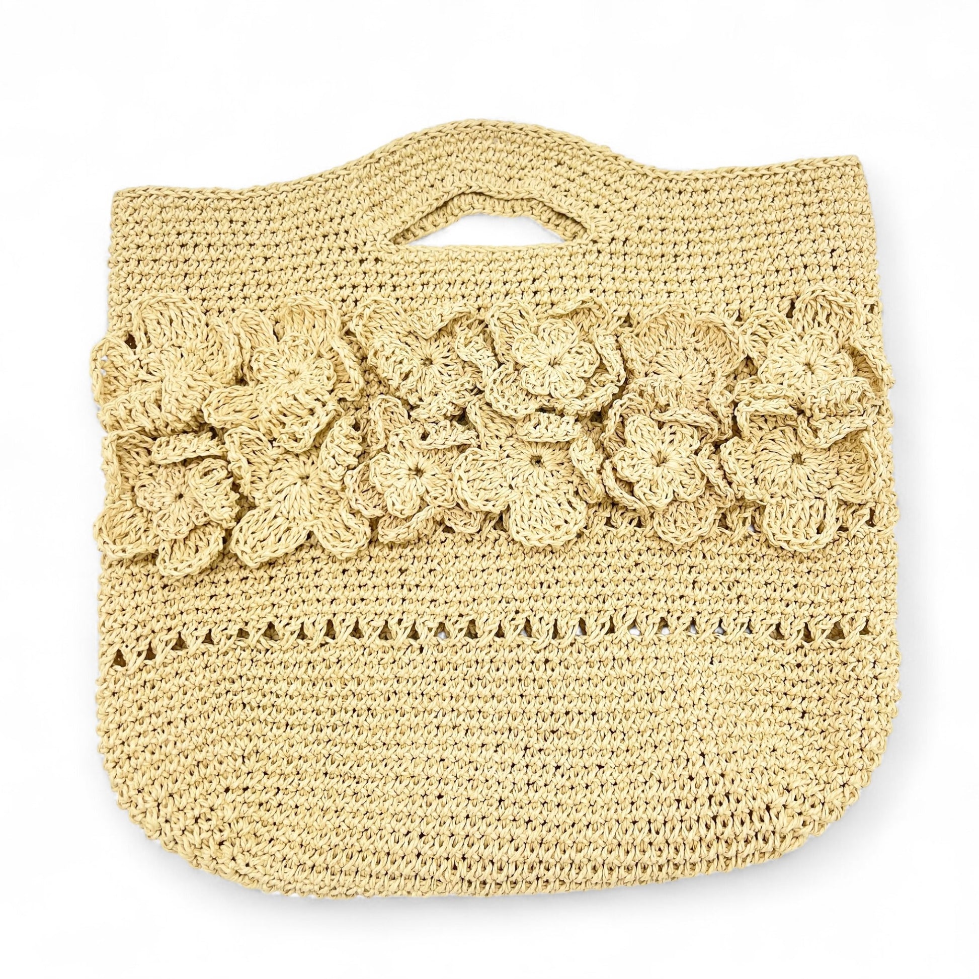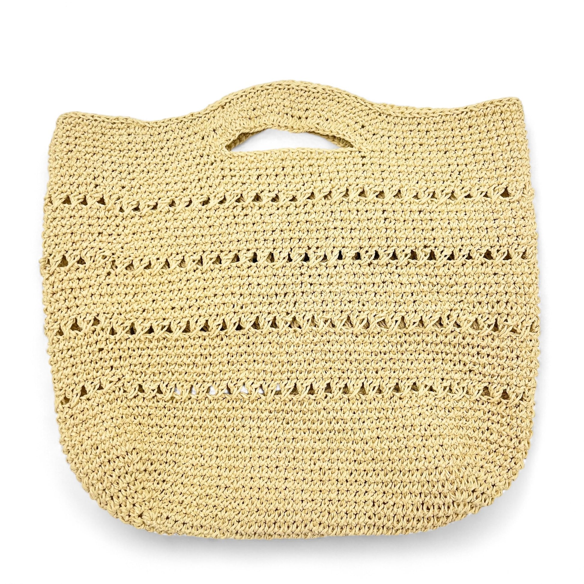 Each bag is hand crocheted from straw raffia by skilled artisans, making it unique. Embrace sustainability with this stylish, eco-friendly accessory.
