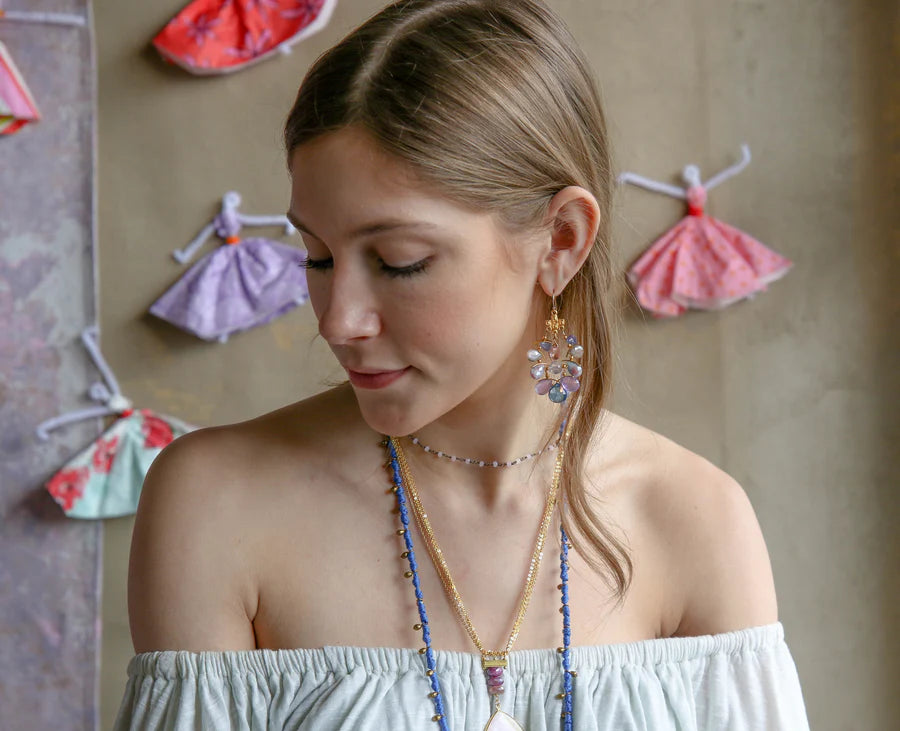 Crafted with hypoallergenic, gold-filled ear wires and semi-precious stones, the Florence Earring offers both elegance and comfort. With a 2.5" length, they’re a statement piece you’ll reach for again and again.