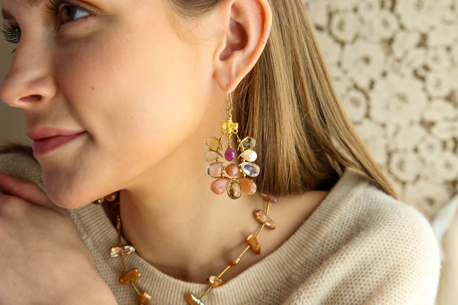 They offer a sophisticated, layered design that’s as striking as it is timeless. These earrings combine a range of rich multi gemstones—each carefully selected for their quality and natural variation. The stunning array of faceted stones is beautifully arranged in an elegant cascade, creating a sense of movement and depth. These earrings are a perfect choice for women who love to spoil themselves (and those they care about), offering a celebration of individuality and attention to detail. Whether you're heading to lunch, the nail salon, or carpool, these earrings will keep you feeling polished and put-together.