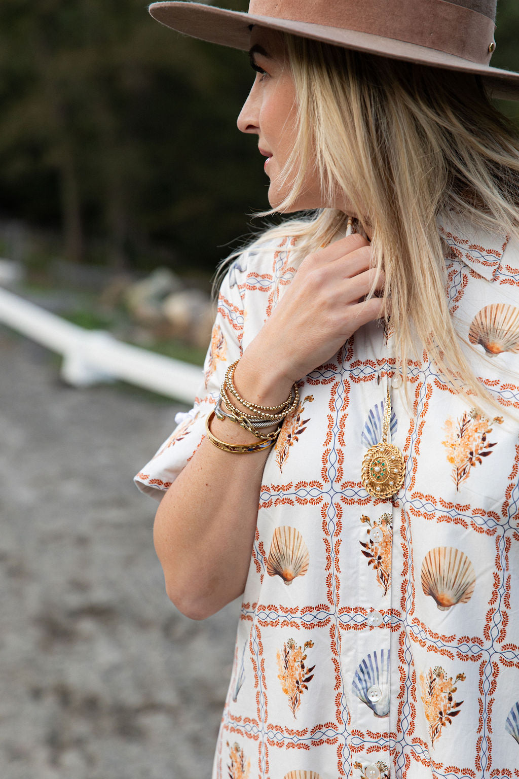 - Full Length mother-of-pearl front placket