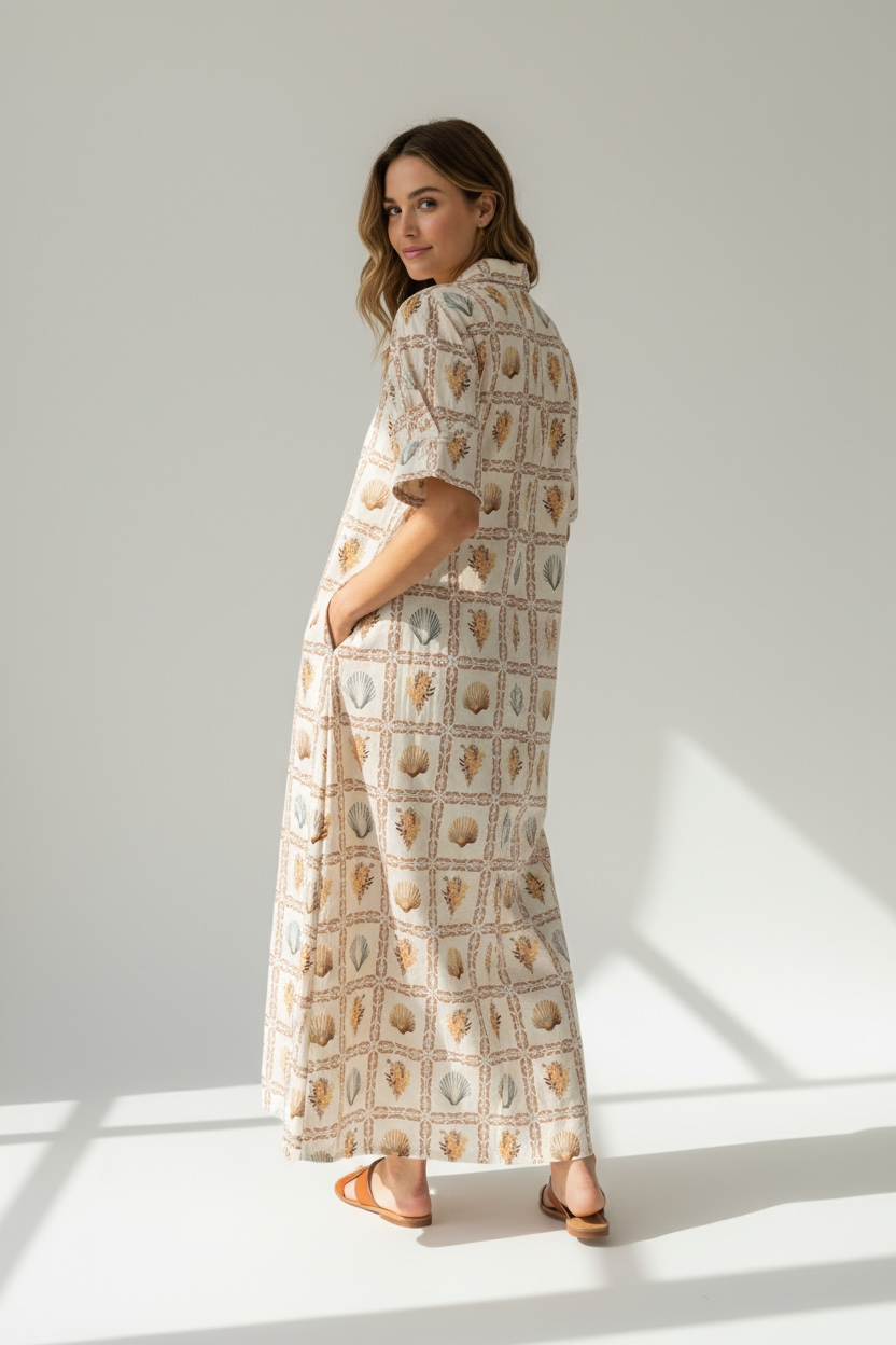 Effortless, flattering, and endlessly versatile — this mid-length shirt dress was made for every season. Designed in a relaxed yet feminine silhouette, it features a full button-down front, cuffed sleeves with delicate appliqué detail, and just the right amount of drape for movement and comfort. Pair it with boots for crisp fall mornings or sandals for breezy resort days — a true all-season favorite that looks as good as it feels. Made from a soft, breathable fabric with UPF 50+ protection, it ensures you stay comfortable and stylish while staying protected from the sun.